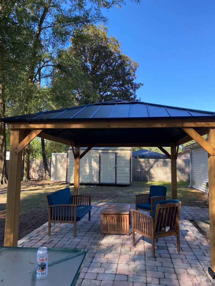 Quiet neighborhood and friendly neighbors. Corner lot with side yard that includes large pine trees offering lots of shade and space.